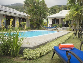 It stands 5 minutes off the Anse Reunion Beach; and is situated in a peaceful and exotic tropical garden of palm trees and a variety of flowering plants, providing a cool and breezy atmosphere complimenting the natural beauty of the island.