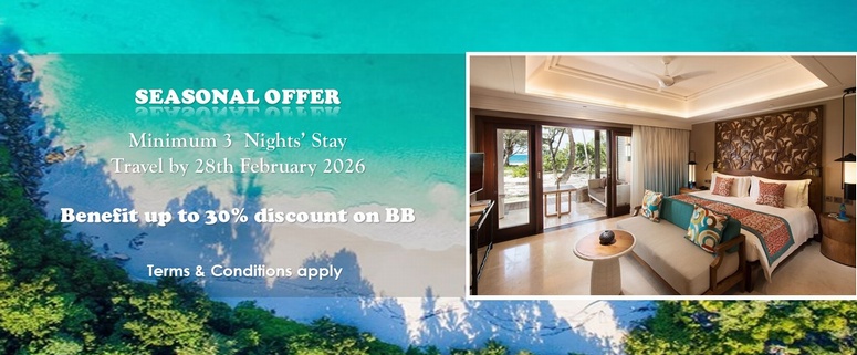 Oriented towards the Indian Ocean within 101 hectares of land. The suites lie scattered along two pristine beaches, to both the southwest and northwest. Each suite is positioned just 15 meters from the shore, discreetly nestled among the natural Seychellois gardens. All suites feature air-conditioning, ceiling fan, bathroom with bath tub, double vanities, separate shower/WC, hairdryer, sitting area, high speed Internet & WI-FI (complimentary Internet access), mini Mac, mini-bar, safe, satellite TV, telephone answering machine, Nespresso machine, tea and coff ee making facilities.